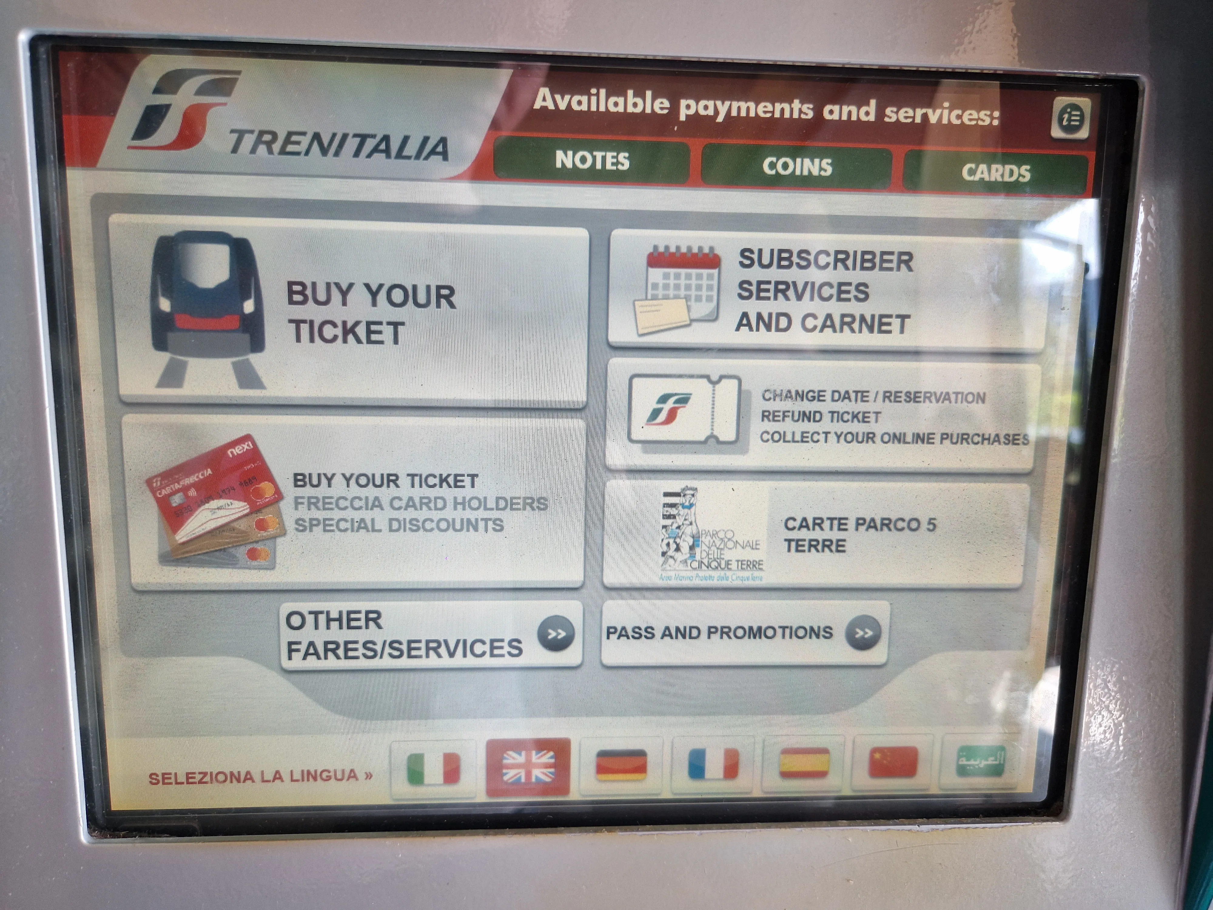 At Trenitalia ticket machines, you can purchase reservations including surcharges for FIP Coupons for Le Frecce and other long-distance trains.